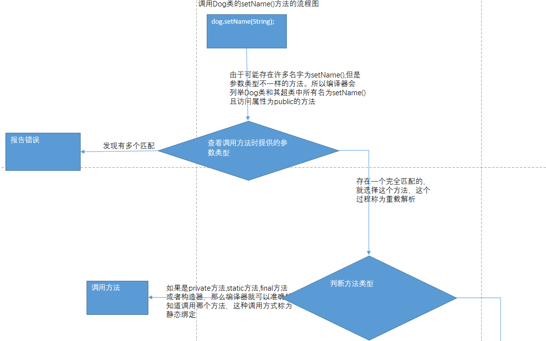 注意:上面流程图中判断方法类型中判断private方法是在dog.setName()方法中可能调用了private方法,调用这个private方法时要重新走这个流程所以要判断。